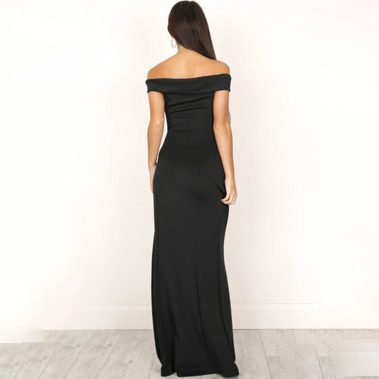 New Summer Elegant Party Dresses Evening Sexy Blue Slim Maxi Dress Slash Neck Off Shoulder Wedding Guest Elegant Dress for Women